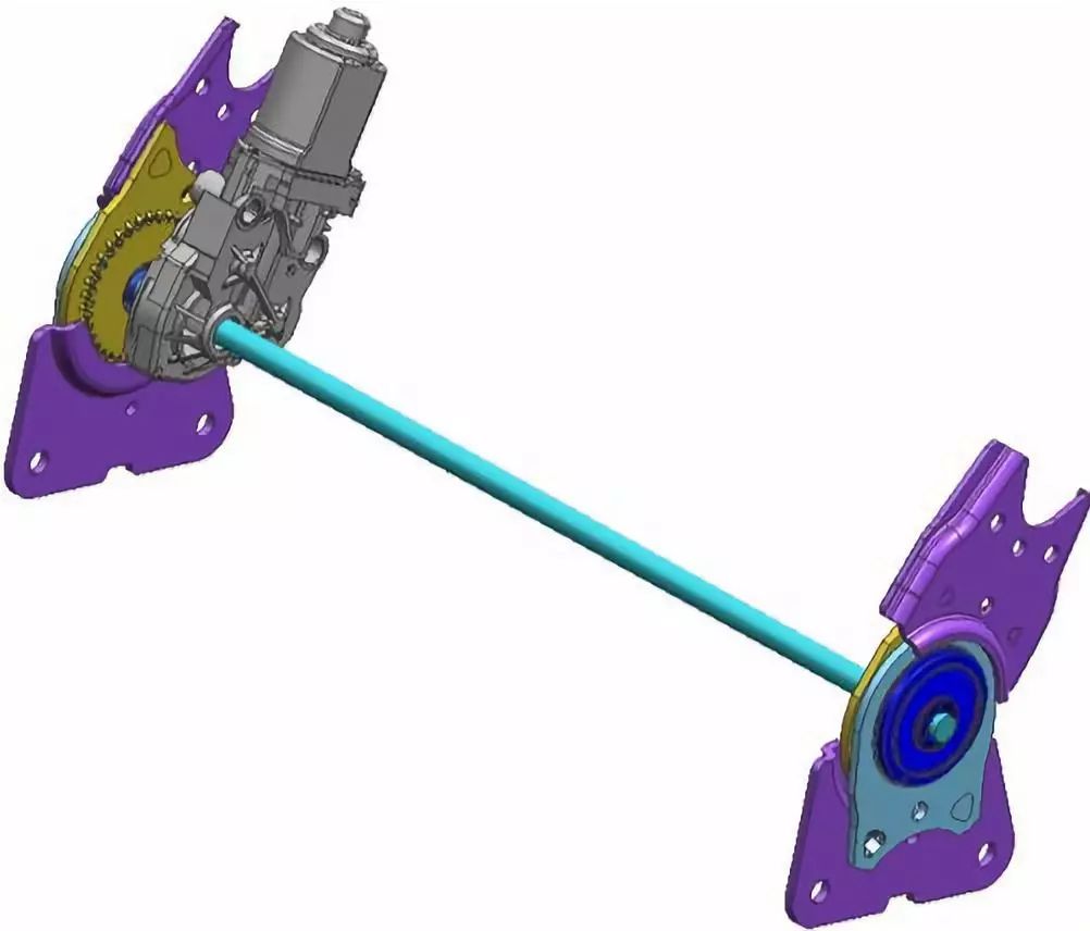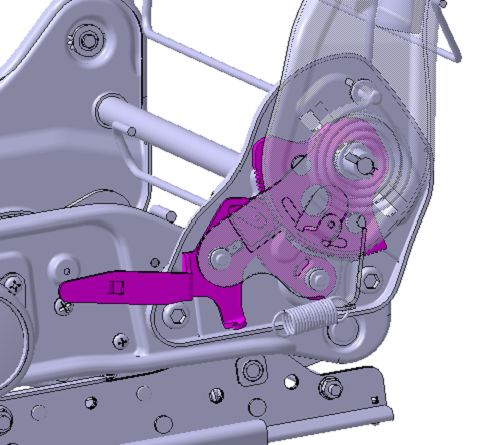 ②双边调角器:靠背侧板与坐垫侧板,两边都有调角器,通过连杆连接。这种结构的优点是对称件和共用件使用可以减少零件个数、靠背刚度和强度都比较高,但是成本稍贵一些。